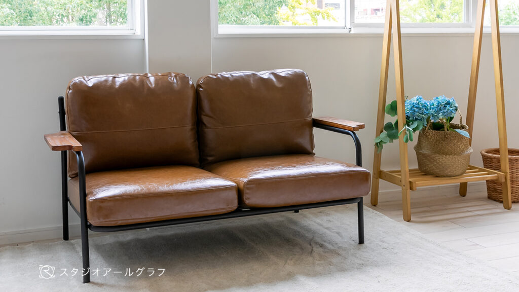 メンズライクのソファーは二人がけの大きすぎないサイズ。お好きな場所に移動が可能です。クールで洗練された印象になります。柔らかなトーンのラグと組み合わせることで、リラックスしたライフスタイルシーンを自然に再現。