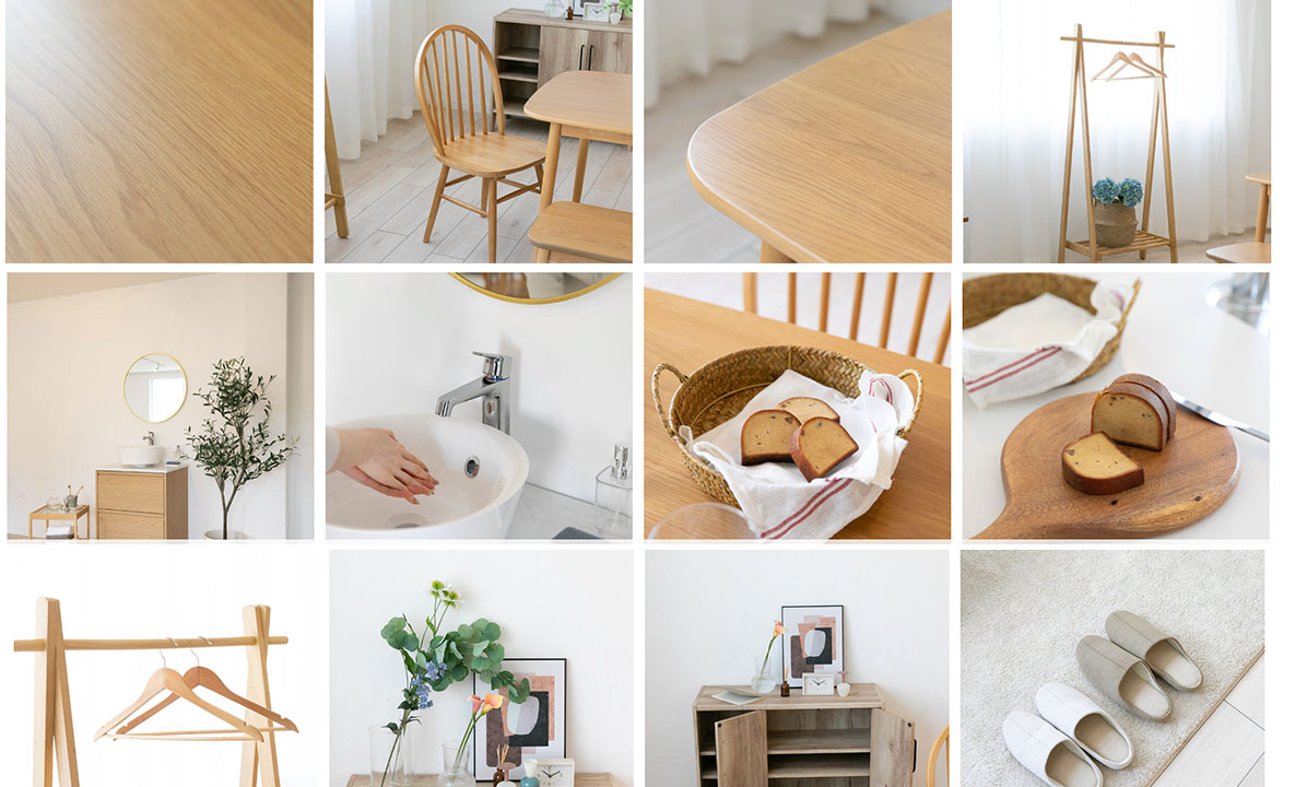合わせてハンガーラックや植物と合わせることでより素敵なライフスタイルシーンの撮影にも活用可能。
